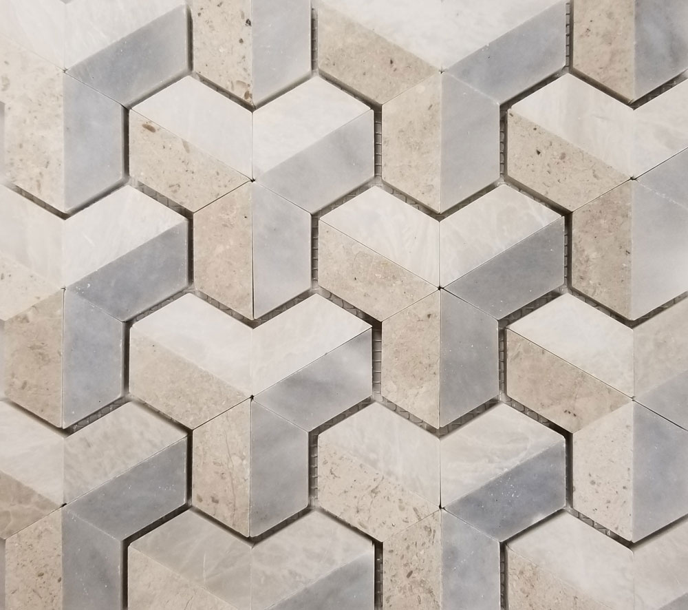 1 x 2 Herringbone Mosaic, 2 Hexagon Mosaic, 2 x 2 Square Mosaic